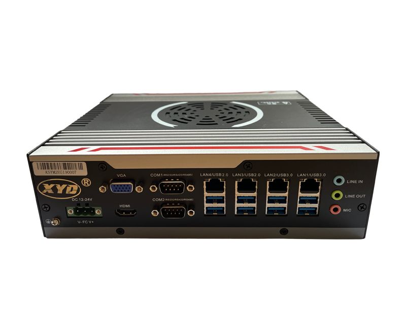 1* VGA, 1* HDMI, 4*LAN 6*COM-poort 4*USB3.0, 4*USB2.0 8*GPIO(4*GPI,4*GPO) 1 set audio-uitvoerinterface; 1*MIC in,1* Lijn uit,1*Lijn in 1*lichtschakelaarknop,1* herstartknop,1* externe schakelaar,1* één sleutelherstel,1* één sleutelback-up,1* SIM-slot,1* DC IN  |